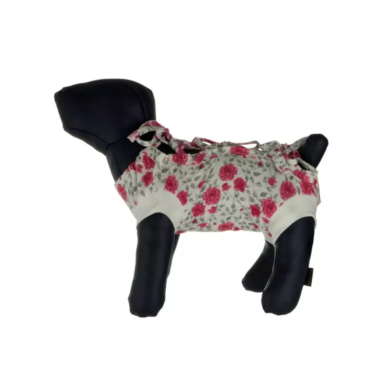 Koszulka pooperacyjna wyprodukowana z dzianiny bawełnianej, oddychająca, rozciągliwa, łatwo dopasowuje się do ciała. Posiada wewnętrzną kieszeń na dodatkowy opatrunek, który zabezpiecza szwy przed rozlizywaniem ich przez tkaninę i namaczaniem śliną oraz przed zabrudzeniami np. podczas spacerów. Charakteryzują się też bardzo wysoką estetyką i jakością wykonania. Uniwersalna dla psów i kotów. W tych koszulkach zwierzęta czują się swobodnie, koszulka nie krępuje ruchów, nie wpija się np. w pachwiny.