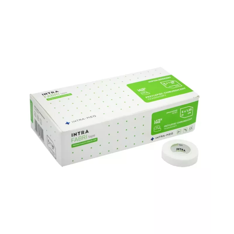 Przylepiec tkaninowy Intra Fabri Tape to produkt wykonany z wysokiej jakości tkaniny, który swoim uniwersalnym zastosowaniem sprawdza się zarówno do mocowania opatrunków jak i jednorazowego sprzętu medycznego. Dzięki ząbkowanym krawędziom przylepiec można bez użycia nożyczek dzielić w poprzek. Ma bardzo dobrą przylepność do skóry. Posiada wodoodporny klej akrylowy. Jest hypoalergiczny, bez zawartości lateksu.