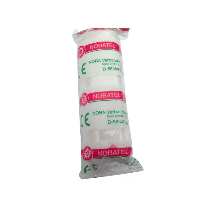 NOBATEL bandaż elastyczny to lekki bandaż o średniej rozciągliwości, składający się z mieszanki bawełny i poliamidu, ma rozciągliwość ok. 60%. Dzięki temu ma uniwersalne zastosowanie we wszystkich dziedzinach medycyny. Bandaże NOBATEL® mają długość 5 m (po rozciągnięciu) i są pakowane pojedynczo w folię. 10 bandaży pakowanych jest w składane pudełko.